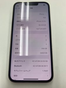 続いてはiPhone13ProMax256GBの買取をさせていただきました。