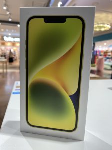 続いては新カラーのイエローのiPhone14です!容量は256GB、余裕もあり4年ぶりのパステルカラーの展開に皆さま期待したことでしょう。