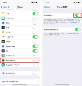 iPhoneは端末からAppleIDの項目を選択し、中にあるiPhoneを探すという機能をオフにすればいいのですが
